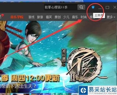 2、在打開播放器窗口,點擊右上角的“主菜單”工具圖標按鈕。如圖所示;