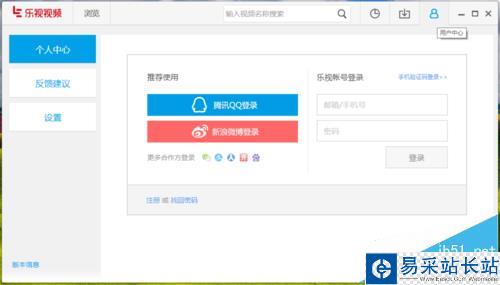 2、在打開(kāi)播放器窗口,點(diǎn)擊右上角的“用戶(hù)中心”工具圖標(biāo)按鈕。如圖所示;