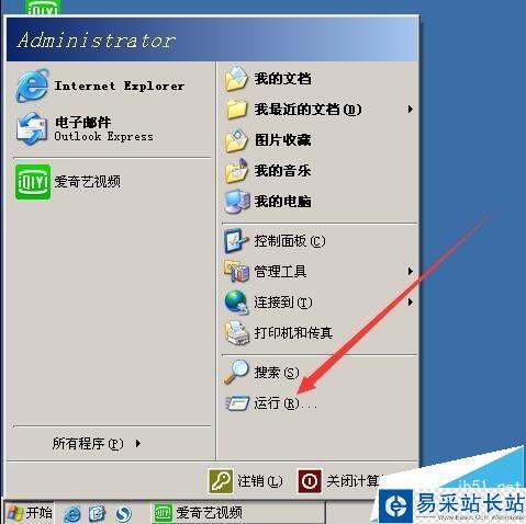 3、接下來點(diǎn)擊開始菜單,在彈出菜單中點(diǎn)擊“運(yùn)行”菜單項(xiàng)