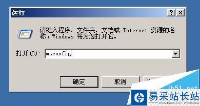 4、這時(shí)會(huì)打開運(yùn)行對(duì)話框,在對(duì)話框中輸入命令msconfig,接著點(diǎn)擊確定按鈕