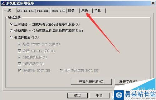 5、在打開的系統(tǒng)配置實(shí)用程序窗口中,點(diǎn)擊上面的“啟動(dòng)”標(biāo)簽