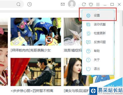 2、在打開的優(yōu)酷視頻窗口,點擊窗口右上角的“三橫-菜單”選項圖標按鈕。如圖所示;