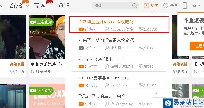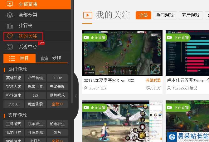 3、可以在斗魚TV首頁的左上角有我的關(guān)注里面有你以前看過的關(guān)注的人,找到它點進(jìn)去就可以來到他的直播間了,很方便的。