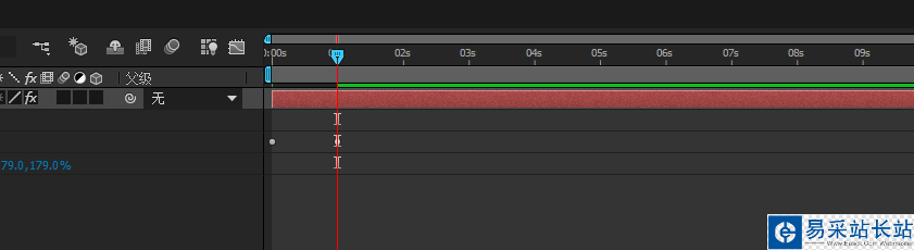 6、然后將時間線向后挪動一秒之后,將結束值變成一百,如下圖所示,調整好關鍵幀的速度,這樣文字手寫的效果就完成了