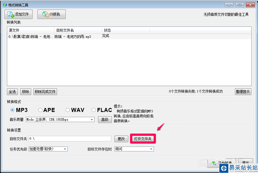 8、轉換完成,我們點擊:打開文件夾,查看轉換的歌曲;