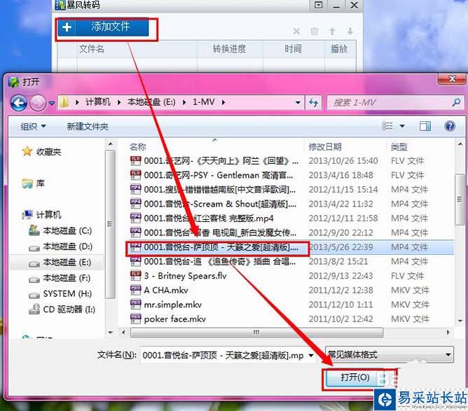 3、在轉(zhuǎn)碼的界面中,選擇該視頻文件。點(diǎn)擊“添加文件”選擇添加。