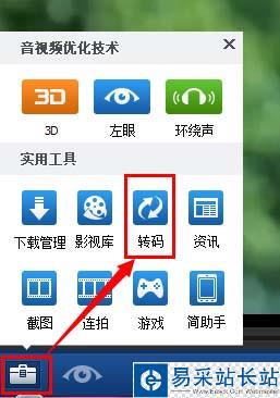2、接下來,使用工具箱中的“轉(zhuǎn)碼”工具。點(diǎn)擊工具箱按鈕,選擇“轉(zhuǎn)碼”工具。