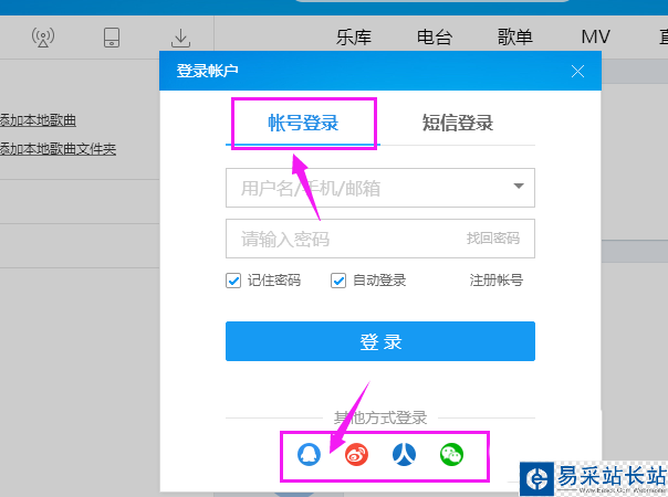 3、輸入賬號密碼登錄,或是選擇第三方登錄(比如QQ等)。