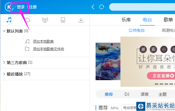 2、點擊左上角的【登錄】。