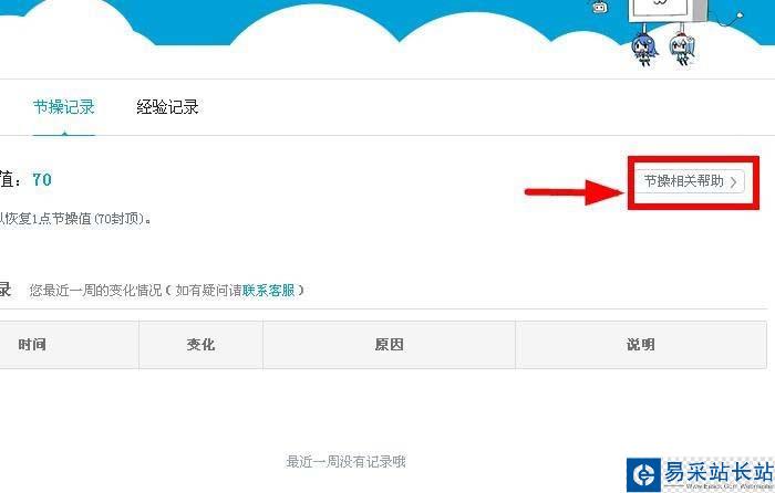 4、點擊個人中心界面右上角“節(jié)操相關(guān)幫助”,點擊進入。