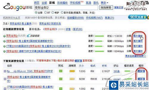 一旦迅雷狗狗檢測到迅雷看看有我們搜索的視頻由會出現相應的列表,只要單擊“整片播放”鏈接即可打開迅雷看看播放。