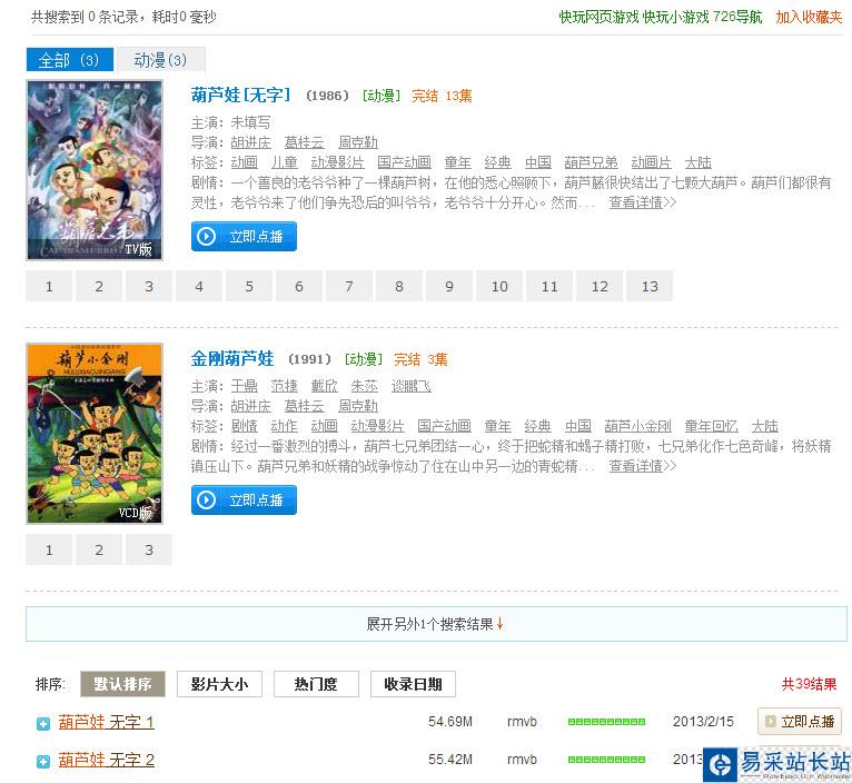 小編在搜索窗口中輸入“葫蘆娃”,跳轉到網頁后會顯示檢索出來的結果。
