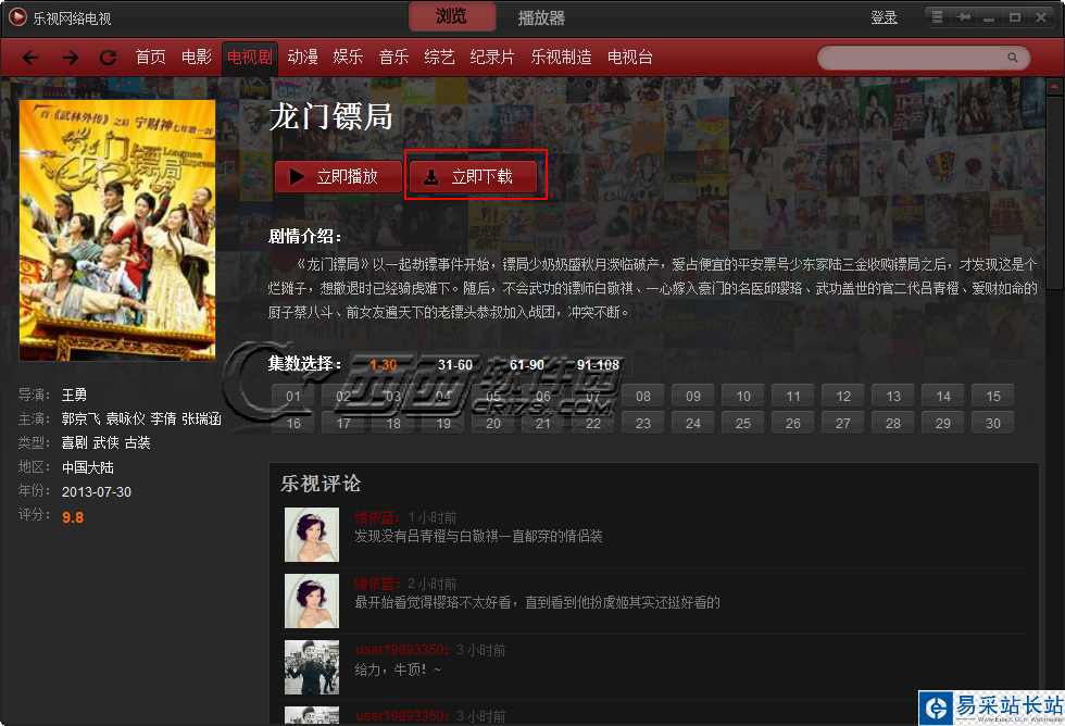 4、點擊視頻介紹頁面的立即下載,如果是電視劇的話會有個劇集選擇,一般的電影動漫之類的視頻則會讓你選擇清晰度,