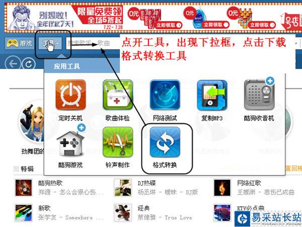 休閑的時候,打開電腦,泡杯茶,放幾首動聽的音樂,美哉~今天錯新站長站小編就來教大家如何下載酷狗音樂,并且轉(zhuǎn)換它的格式,讓它支持所有的播放器!
