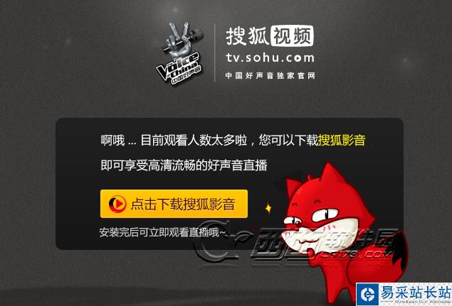 中國好聲音第二季很精彩有木有!看得人超級多有木有!可是人多擁擠就會卡,實在太火還會被限流。遇到這種情況,唯一的解決辦法就是安裝搜狐影音。
