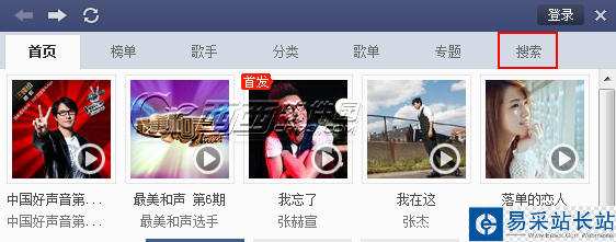 3、點擊音樂窗的搜索按鈕,搜索想要下載的歌曲。