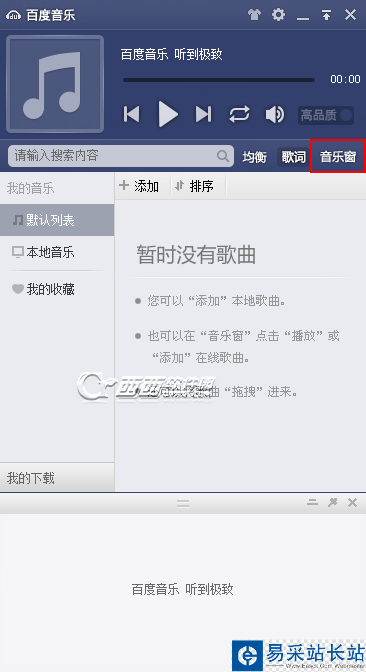 2、安裝完畢后打開百度音樂,點擊音樂窗開啟音樂窗口。