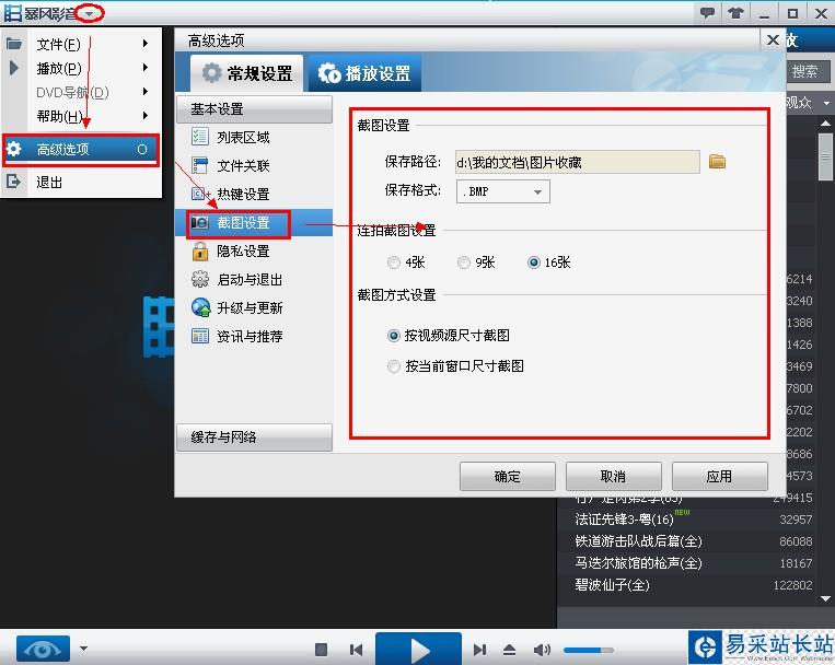 默認截圖路徑及連拍張數等相關路徑在主菜單-高級選項中設置;