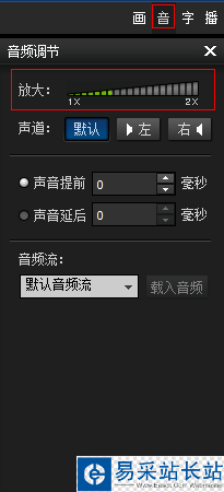 如果是影片具有多種音頻選擇的情況下,您可以點擊播放區上方浮動控制欄右側的“音”字,選擇音頻流,同時也可載入外掛音頻流。