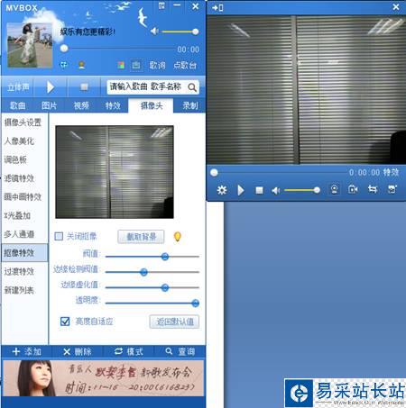 MVbox它能在您電腦上模擬一個攝像頭,您可以用MVBOX在任何支持?jǐn)z像頭的聊天軟件(UC、QQ、MSN、E話通、碧聊、呱呱等等)里面唱歌、跳舞、播放電影、MTV、圖片到虛擬攝像頭與網(wǎng)友共享;可對您的視頻或照片添加各種特效,還可對屏幕窗口進(jìn)行轉(zhuǎn)播或錄制。