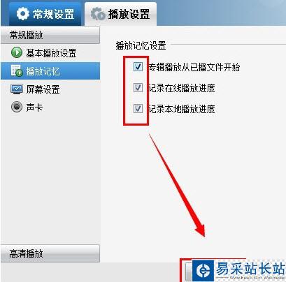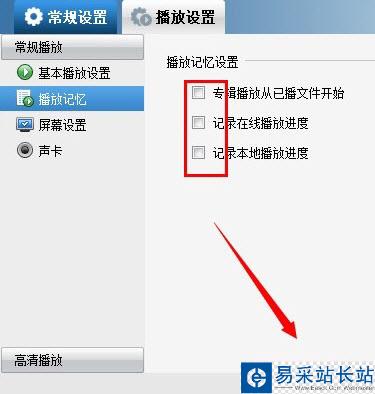 4.如果需要取消記憶播放,將其勾去掉即可。