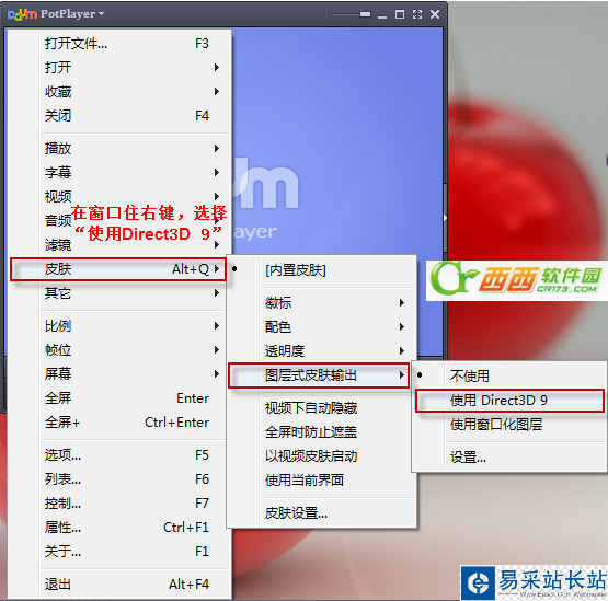 3、然后到桌面,點擊打開potplayer ,以下設置可以讓potplayer變得非常簡潔(只適合win7),如果是XP系統,則選擇“使用窗口化圖層”
