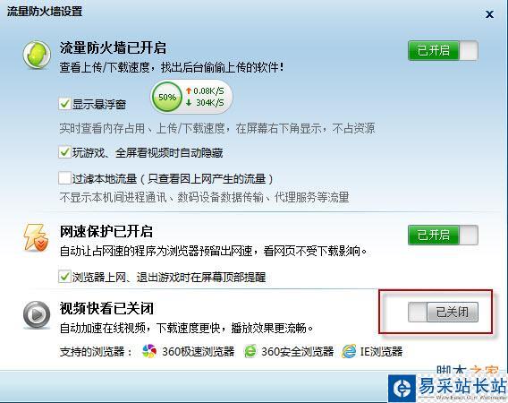 注意:360視頻快看功能目前只支持360極速瀏覽器、360安全瀏覽器和ie瀏覽器。