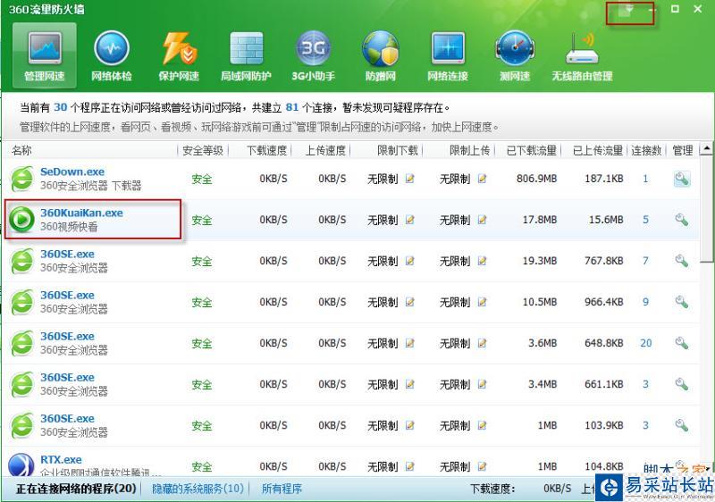 b.接著就是在“已添加的功能”中打開流量防火 墻,這個時候我們看到流量防火墻中有一個360kuaikan.exe這個就是視頻快看哦!