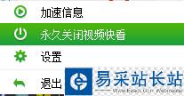 2.小編右鍵了圖標(biāo),彈出四個選項(xiàng)。依次是:加速信息、永久關(guān)閉視頻快看、設(shè)置和退出。