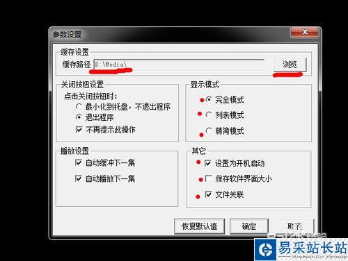 關于播放器的設置,你可以點擊右側按鈕(如圖)。你可以選擇各種設置,緩存地址、開機自動運行等。