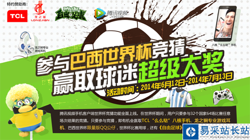 騰訊視頻手機客戶端世界杯競猜功能全面上線,在世界杯期間,用戶只要參與32個國家64場比賽任意場次結果的競猜,只要參與競猜,即有機會贏取TCL“么么噠”八核手機、龍之锏專業(yè)游戲耳機,巴西世界杯限量版QQ公仔,世界杯比賽用球,還有《自由足球》游戲超值禮品大放送。
