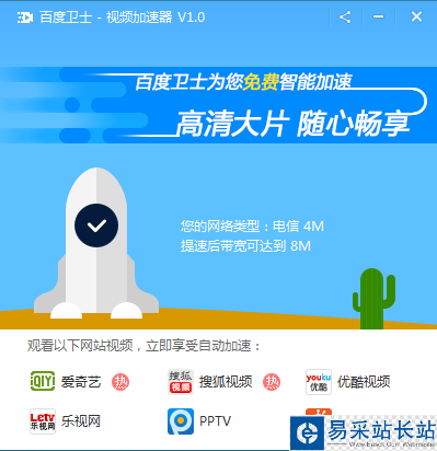百度衛(wèi)士視頻加速器是一款免費的在線視頻加速工具,2M網(wǎng)速最高提速到20M,光纖最高提速到100M!智能自動加速,簡單好用!