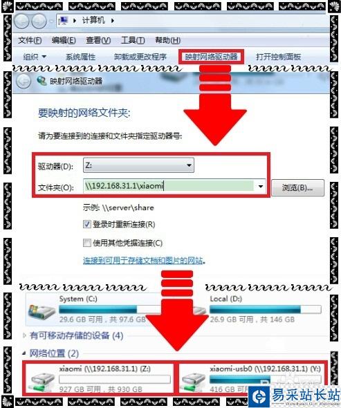 添加完成后,如圖所示:小米路由顯示為Z:盤,外接硬盤顯示為Y:盤