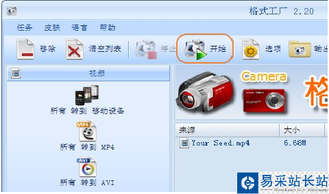 4、點擊工具欄“開始”按鈕,進行格式轉換