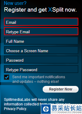 2.登陸Xsplit 需要在 https://www.xsplit.com/#register 注冊免費用戶