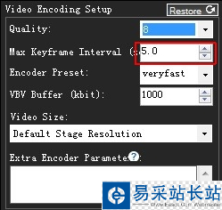・Max Key frame Interval關鍵幀間隔。新浪直播要求設置 5.0 否則會出問題