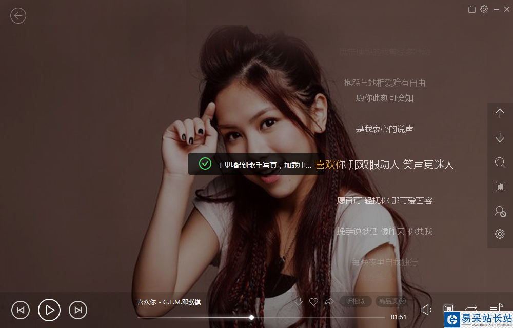 4、提示以匹配到歌手寫真,加載中。等待加載完成。即可顯示歌手精美寫真圖片。