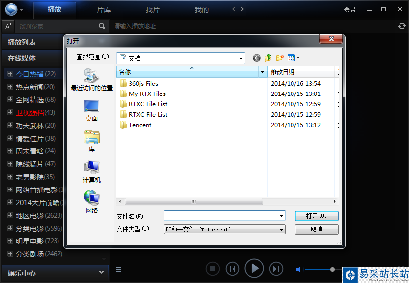 6、如果你在本地有BT種子文件,你可以點(diǎn)擊打開BT種子,你可以選擇打開.torrent格式的種子文件