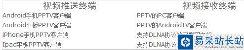 PPTV多屏功能基于國際通用DLNA標準,在同一局域網內,實現手機、Pad、PC及電視的互通。可以把手機、Pad上看到的影片推送到PC及電視上播放。