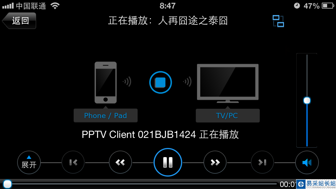 3. 打開推送終端的PPTV客戶端,點擊播放,選擇接收終端播放。
