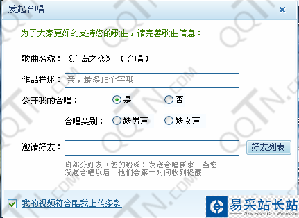 您在上傳發(fā)起合唱歌曲時,您可以選擇公開合唱或者邀請好友與您合唱,公開后,您的合唱可以被其他網(wǎng)友在最in男(女)合聲榜內合唱。