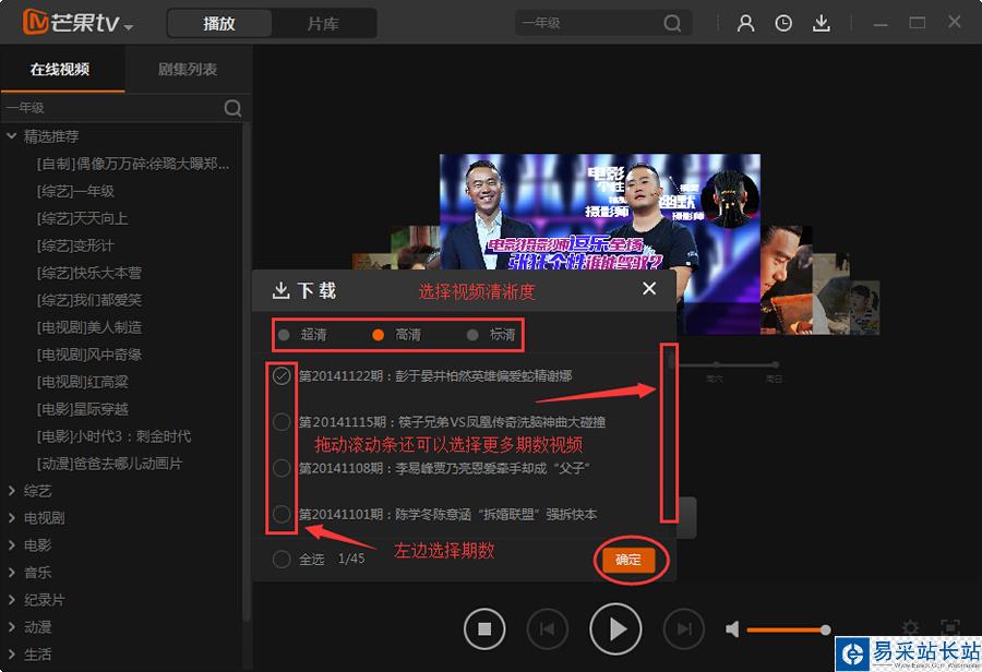 2.然后再選擇要下載的期數以及清楚程度(有超清、高清、標清),最后點確定即可。