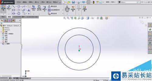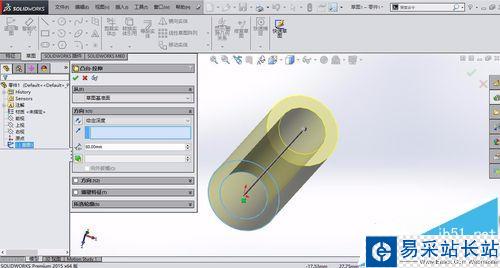 2、我們先繪制一個圓筒:選擇拉伸凸臺命令,然后繪制一個外徑大小為30mm的圓,內徑為20mm的圓,然后進行拉伸,拉伸高度可設置為80mm,點擊打勾。