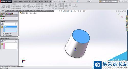 4、點擊抽殼,抽殼的面為圓柱的上表面,即為上步驟所拉伸方向選取的上表面。設置抽殼的為1mm,即壁厚為1mm。