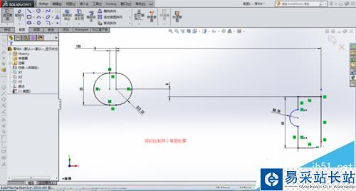 1、首先繪制草圖作為旋轉輪廓,現時創建兩個封閉輪廓,同時需繪制一條中心線作為旋轉軸。具體操作如圖所示
