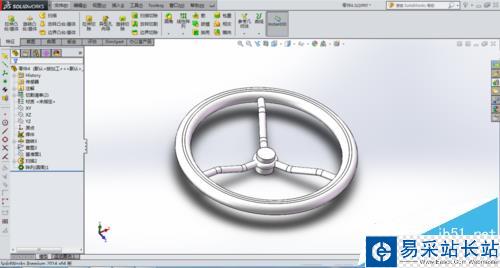 solidworks在機械設計中很有優勢,拉伸、旋轉、掃描這些在三維軟件中都有的功能,但怎樣使用還有它的訣竅,這里以創建一個汽車方向盤為例講述一下在solidworks中怎樣一次旋轉創建多個實體。