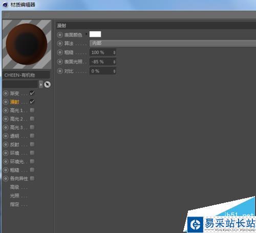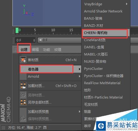 4、就到了重要的創(chuàng)建泥土的材質效果了,我們這里使用cheen-有機物來模擬效果,這個材質不只是可以制作醫(yī)療上的一些效果,而且還可以模擬一些其他效果。創(chuàng)建-著色器-cheen-有機物。