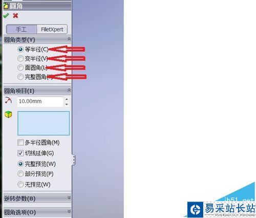 9、面圓角 繪制圓角,選中兩個有公共邊的面,設置好圓角半徑,公共邊就可以生成圓角