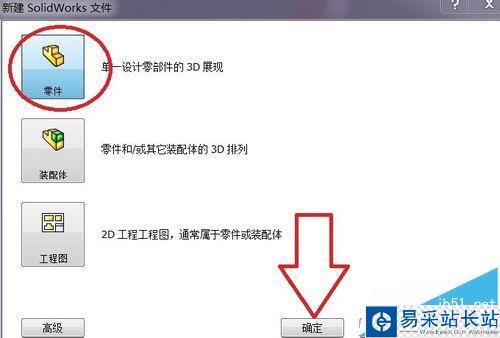 2、在彈出的對話框中,選擇零件后點擊確定