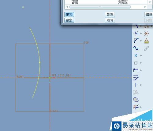 4、接下來是選擇Top平面為草繪平面,方向按默認就好,然后點擊確定,再點擊缺省。